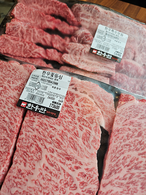먼저 꽃등심 3팩을 골랐는데, 100g당 26,000원이며 총 173,600원짜리 꽃등심....